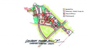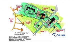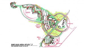 THE GOAL OF THE NON-MISSION FACILITIES FOR THE SUB-AREA OF EMR INSTALLATION IS TO CREATE AN ENVIRONMENT THAT SUPPORTS, ENHANCES AND PRESERVES RESOURCES FOR THE OPERATION OF THE MISSION. TO THIS END, ALL OF THE PHYSICAL FACILITIES OUTLINED IN THE PROJECT PROGRAM AND SPACE NEEDS ANALYSIS MUST CREATE AN ATMOSPHERE THAT CREATES A HIGH QUALITY LIVING AND SOCIAL EXPERIENCE FOR STAFF AND EMPLOYEES, WHILE ALSO BEING RESPECTFUL OF THE ENVIRONMENT, THE SITE AND THE LOCAL VERNACULAR. THE CONCEPTS OF MINIMAL BUILDING FOOTPRINTS, SHARING OF SYSTEMS, A “VILLAGE” ATMOSPHERE, MINIMAL LANDSCAPE/TREE REMOVAL AND A COMPACT BUILDING ARRANGEMENT ARE ALL HALLMARKS OF THE LAND USE CONCEPTS PROPOSED. WHERE POSSIBLE, WE HAVE COMBINED USES THAT HAVE SYNERGY IN ORDER TO REDUCE OVERALL BUILDING FOOTPRINT SIZES, ELIMINATE NUMEROUS SEPARATE STRUCTURES AND WILL UTILIZE APPROPRIATE SOLAR/WIND ACCESS THROUGH BUILDING LOCATION AND SITE DESIGN. THIS APPROACH REDUCES CONSTRUCTION COST, WHILE ALLOWING BUILDINGS TO BE GROUPED TOGETHER IN A PEDESTRIAN AND SOCIALLY INTERACTIVE ARRANGEMENT. THE CREATION OF A SUSTAINABLE COMMUNITY THAT RESPONDS TO THE SITE AND THE LOCAL CLIMATE AND ENVIRONMENT THROUGH THE AFOREMENTIONED STRATEGIES WILL BENEFIT THE USERS, THE LOCAL COMMUNITY AND THE MISSION OF THE EMR.