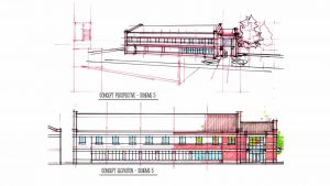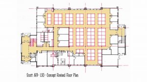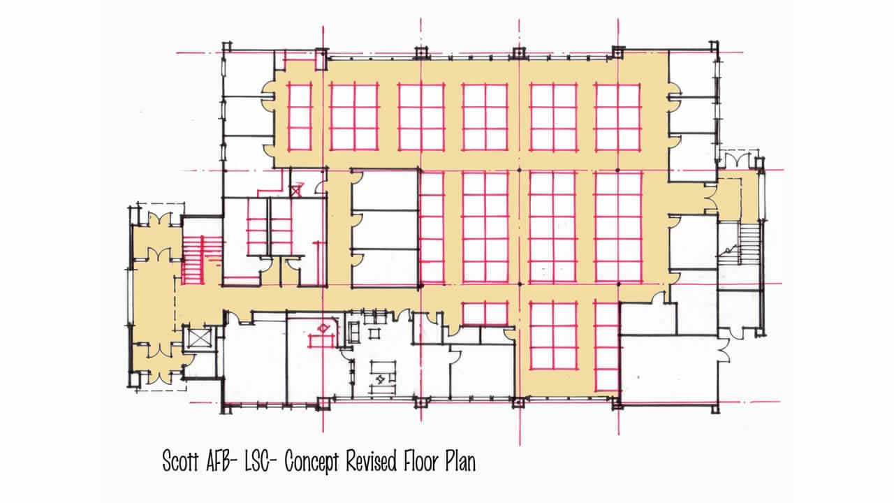 The project is the LSC (Logistics Support Center) to be constructed in two (2) phases. The Louisville District obtained the services of the Architect to provide a DB RFP design for the new two-story facility to accommodate 164 personnel (phase I) currently housed in portable facilities that are inadequate in size and function to perform mission critical duties. The major feature of this facility is the open office spaces on the first and second floors to provide maximum flexibility and greater interaction between logistics personnel. Support spaces, office space, and training/multi-purpose areas will be located on the building’s perimeter. Other supporting facilities include utilities, paving, storm drainage, exterior lighting, site improvements, communications infrastructure backbone and AT/FP requirements. Facility will be designed to meet the requirements of a LEED Silver Certification, and the design-build contractor will be required to register the project with the U. S. Green Building Council (USGBC). Typical for the Architect, a charrette was performed to kick off the design process.