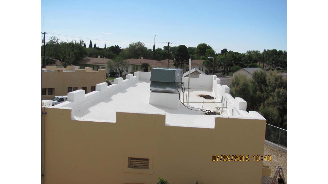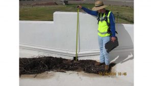 The roofs represent a wide variety of roof types and materials including asphalt shingle, standing seam metal, modified bitumen, aggregate, TPO, PVC, EDPM, and Spanish clay tile. The team documents the state of all penetrations, flashings, drainage systems (i.e. gutters, internal drains, and scuppers), noting all defects and the severity suc as missing shingles, blisters, holes, ponding, surface deterioration, improperly installed equipment, failing equipment supports, debris buildup and leaking penetrations.